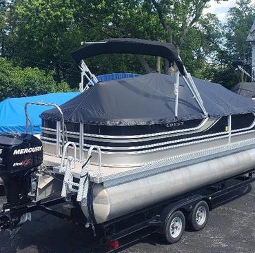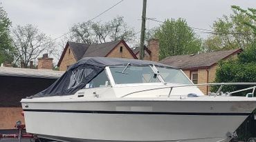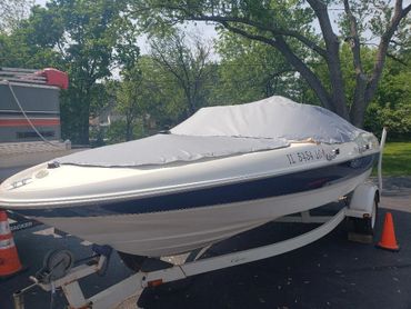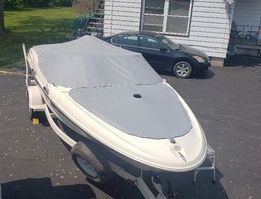 Cover the boat and under the rub rail a few inches can attach to the boat with snaps or straps.